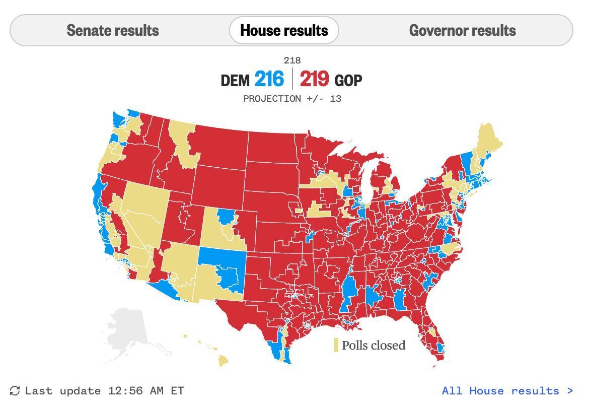 Lapkričio 8 d. JAV įvyko vidurio kadencijos Kongreso rinkimai. Tikslūs rezultatai dar nėra susumuoti, tačiau pagal prognozes šiuo metu į priekį išsiveržė Respublikonų partija, Atstovų rūmuose gavusi 219 vietų.